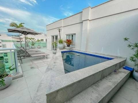 Cobertura à venda em Camboinhas, com 4 quartos, sendo 2 suítes, 2 vagas de garagem, piscina privativa, sol da manhã, vista para montanhas, em condomínio com estrutura de resort, a cerca de 500 metros da praia.